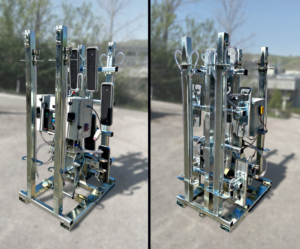 una struttura metallica centrale il telaio portante fissa realizzata in carpenteria d'acciaio ad alto limite di snervamento sulla quale sono ubicate: